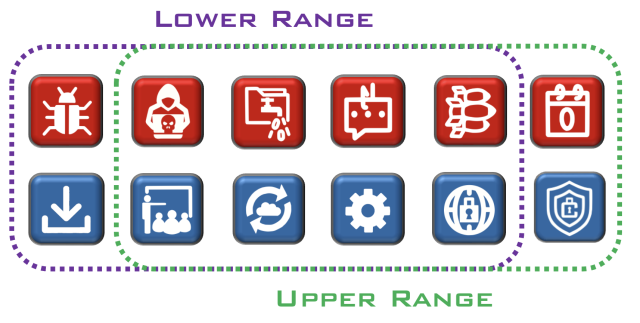 All dice in a declared attack or defence must be of the same type (e.g. an attack cannot be a mix of Malware and Hackers – one or the other must be declared).